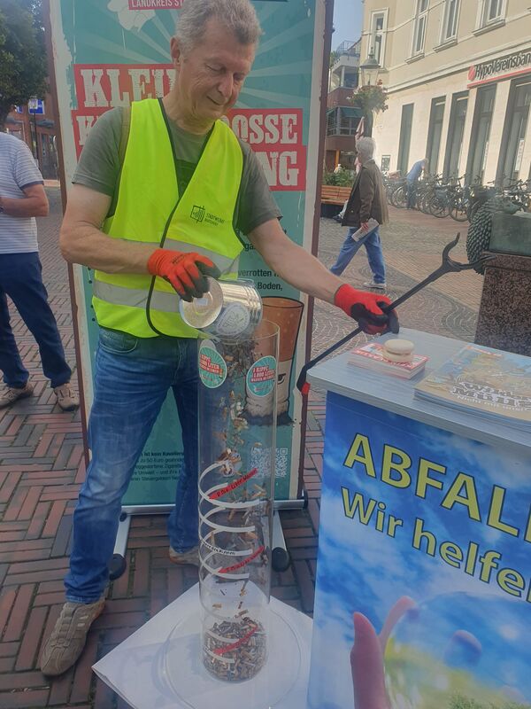 Die Abfallberatung war mit einem Informationsstand in der Fußgängerzone von Buxtehude vertreten, um auf die Auswirkungen von Kippen auf die Umwelt aufmerksam zu machen. „Der Stand war gut besucht, es gab viele interessante Gespräche“, berichten die Abfallberaterinnen, die im Rahmen einer groß angelegten Aufklärungskampagne derzeit über die Folgen achtlos weggeworfener Zigarettenstummel informieren. „Die Kampagnen-Taschenaschenbecher fanden reißenden Absatz“, erzählen sie.