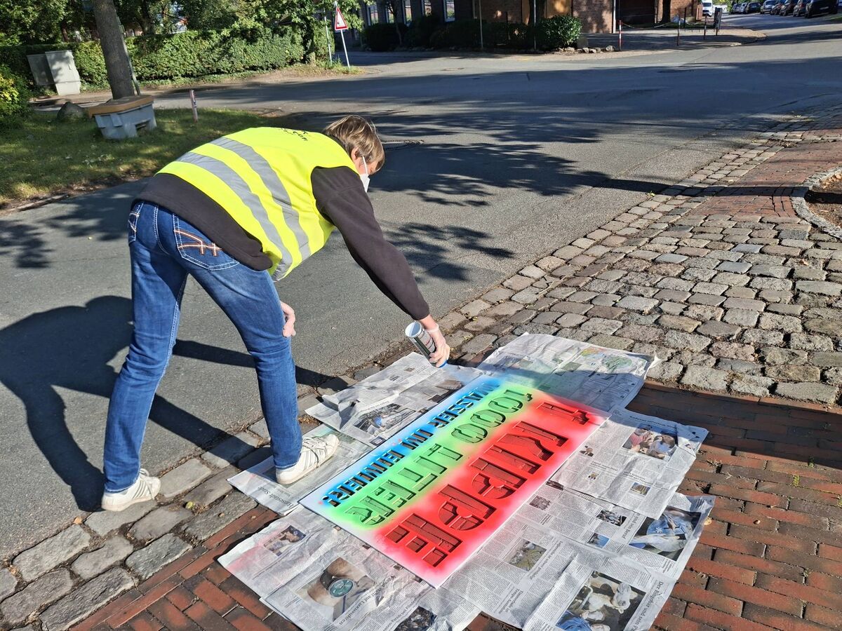 5 Schablonen mit verschiedenen Slogans kamen zum Einsatz